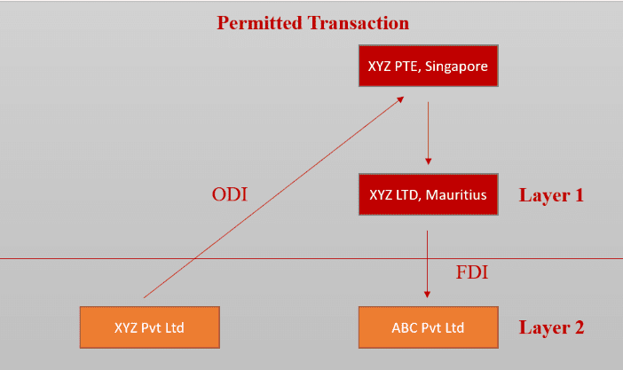 The provision intends to allow a person resident in India to make an investment in a foreign entity that has invested or invests back into India (without any prior approval from the RBI) up to 2 layers of subsidiaries.